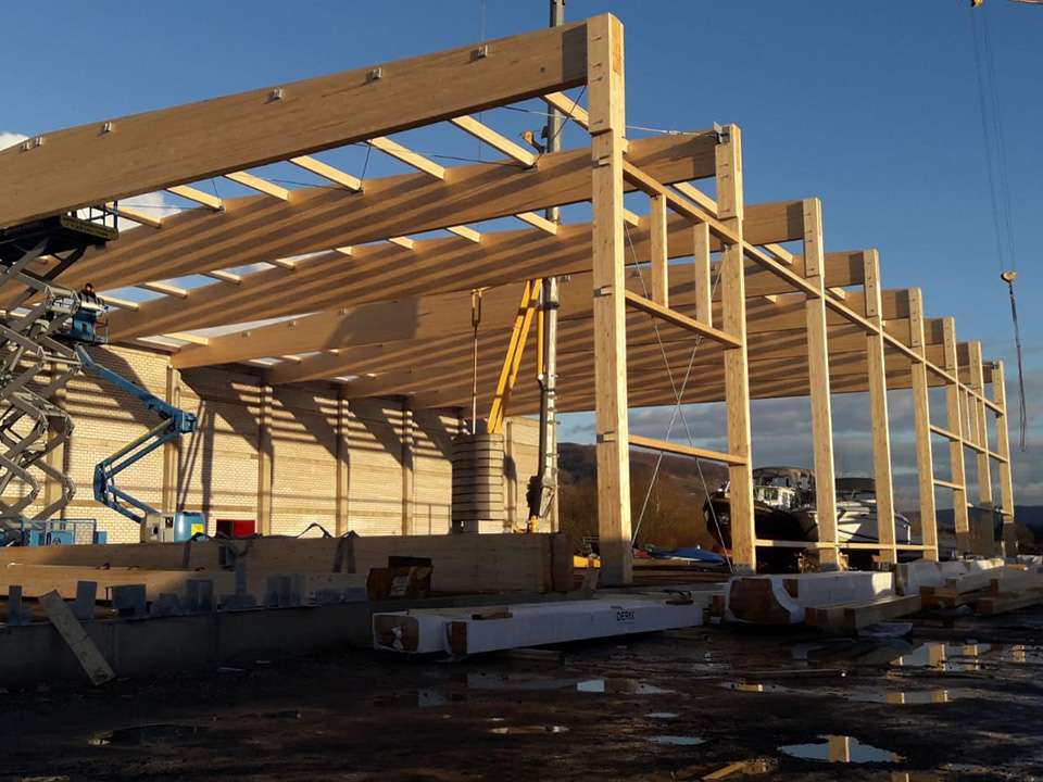 Holz gewinnt im Industriebau zunehmend an Bedeutung. Die Konstruktion mit großen Spannweiten ermöglicht eine flexible und individuelle Raumaufteilung. Änderungen lassen sich einfach umsetzen, denn Zwischenwände können problemlos ergänzt oder angepasst werden. Mit moderner Holzständerbauweise realisieren wir Ihr Bauvorhaben in kurzer Zeit. Denn Zeit ist ein entscheidender Faktor. Wir beraten Sie gerne persönlich.